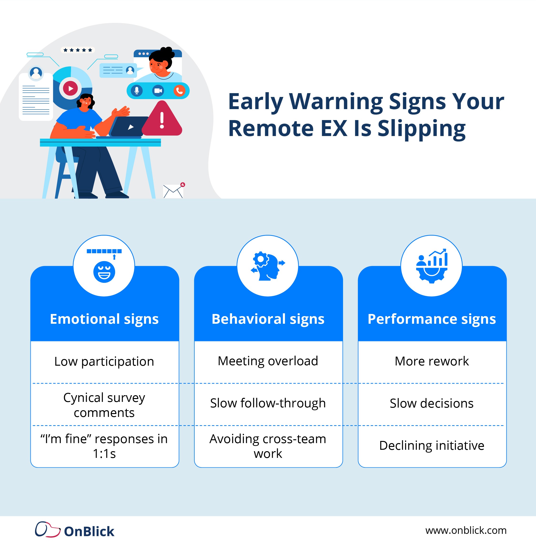 OnBlick’s blog on remote employee experience highlights a simple truth: organizations that intentionally design the remote work environment create stronger engagement, retention, and performance outcomes.