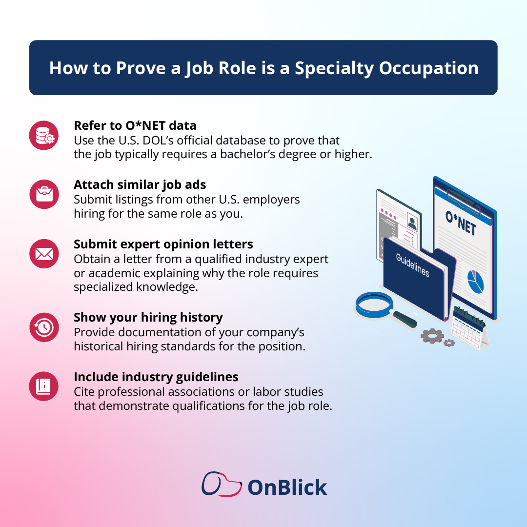 - Proving the job role qualifies as a specialty occupation: It allows USCIS to establish the job role as a specialty occupation.