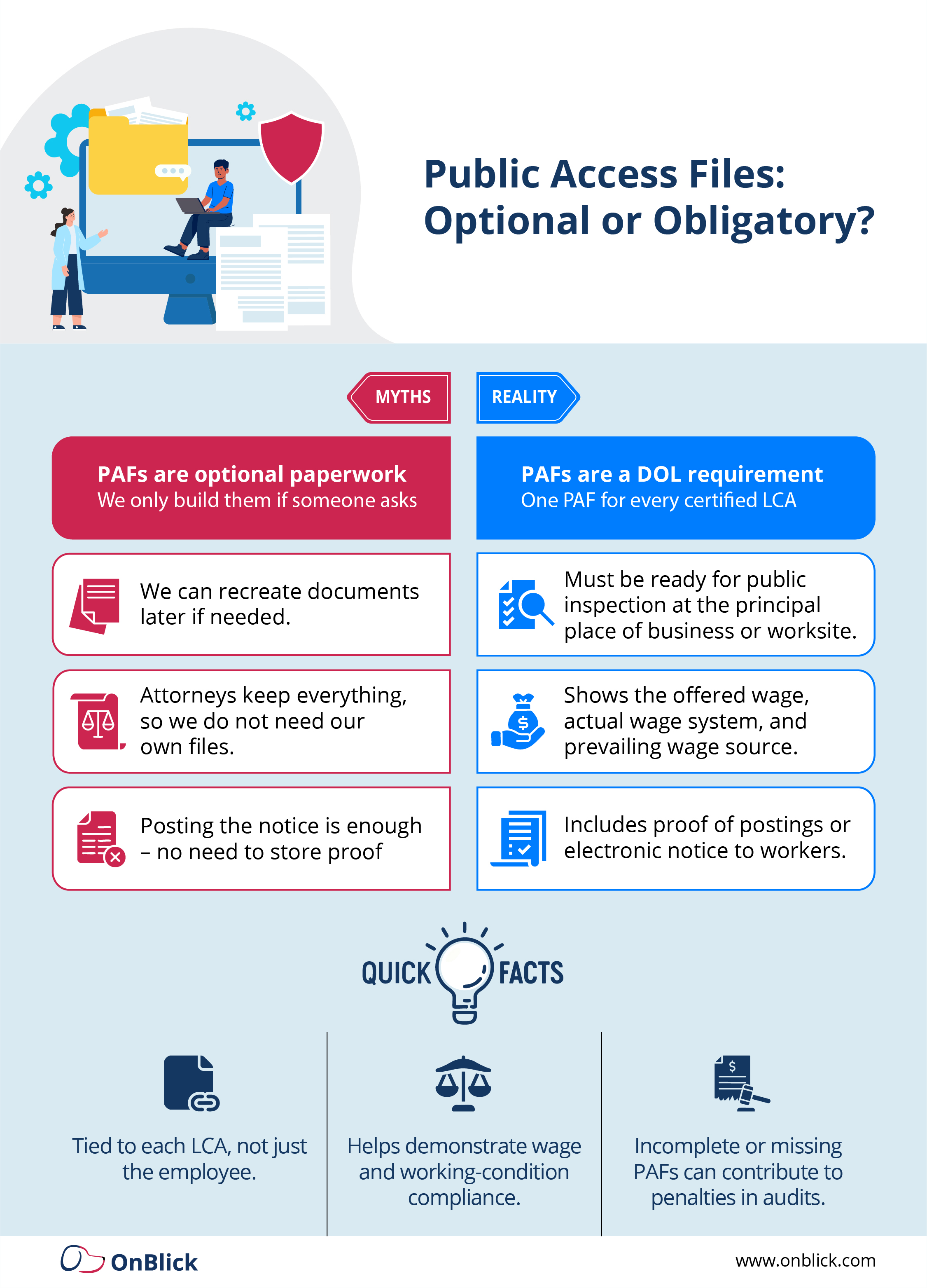 Fact: Employers must create a PAF proactively for each covered LCA, even if no one ever requests access. - Myth: “Our attorney keeps everything, so we don’t need a PAF.”