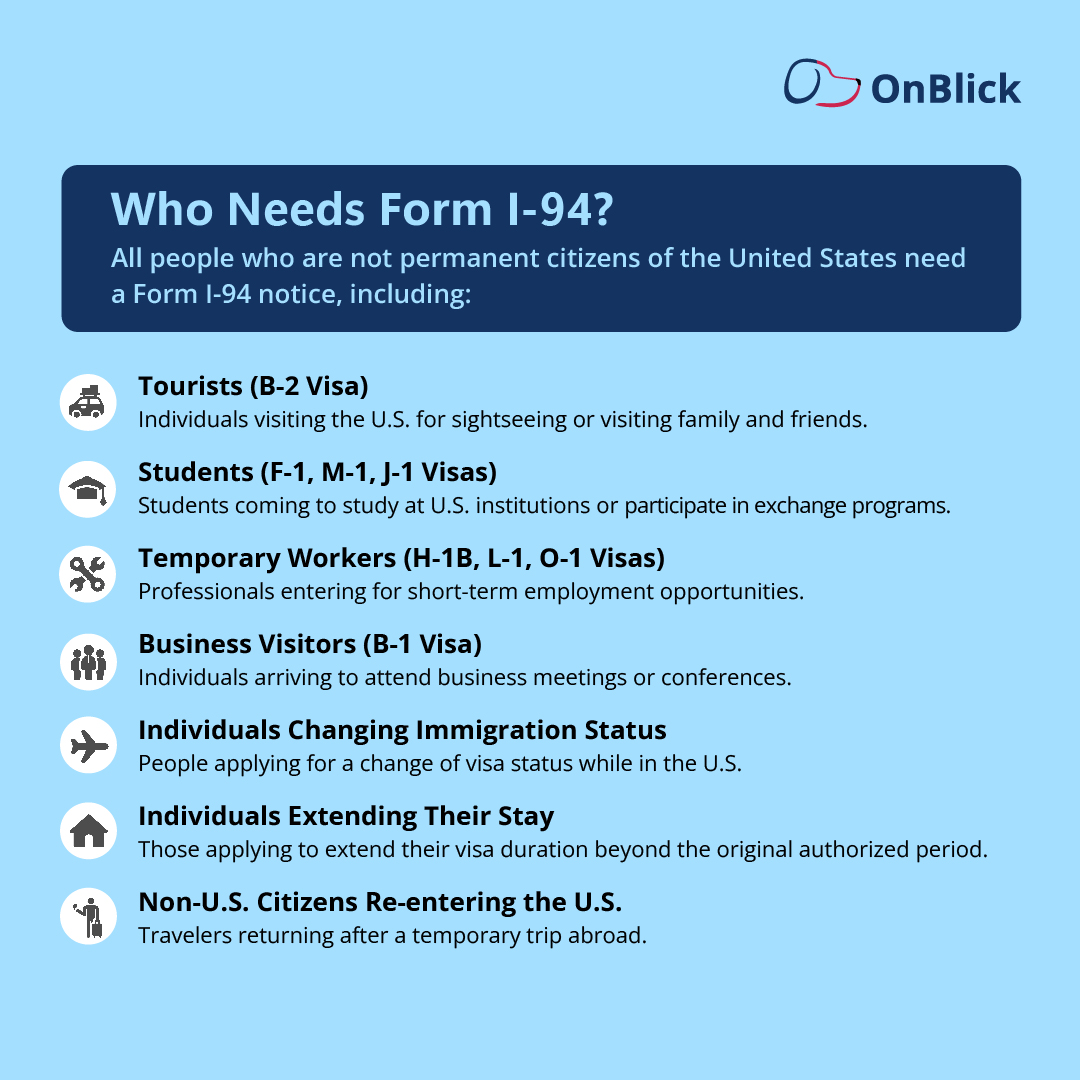 Generally, Form I-94 record is issued to non-U.S. citizens, including: