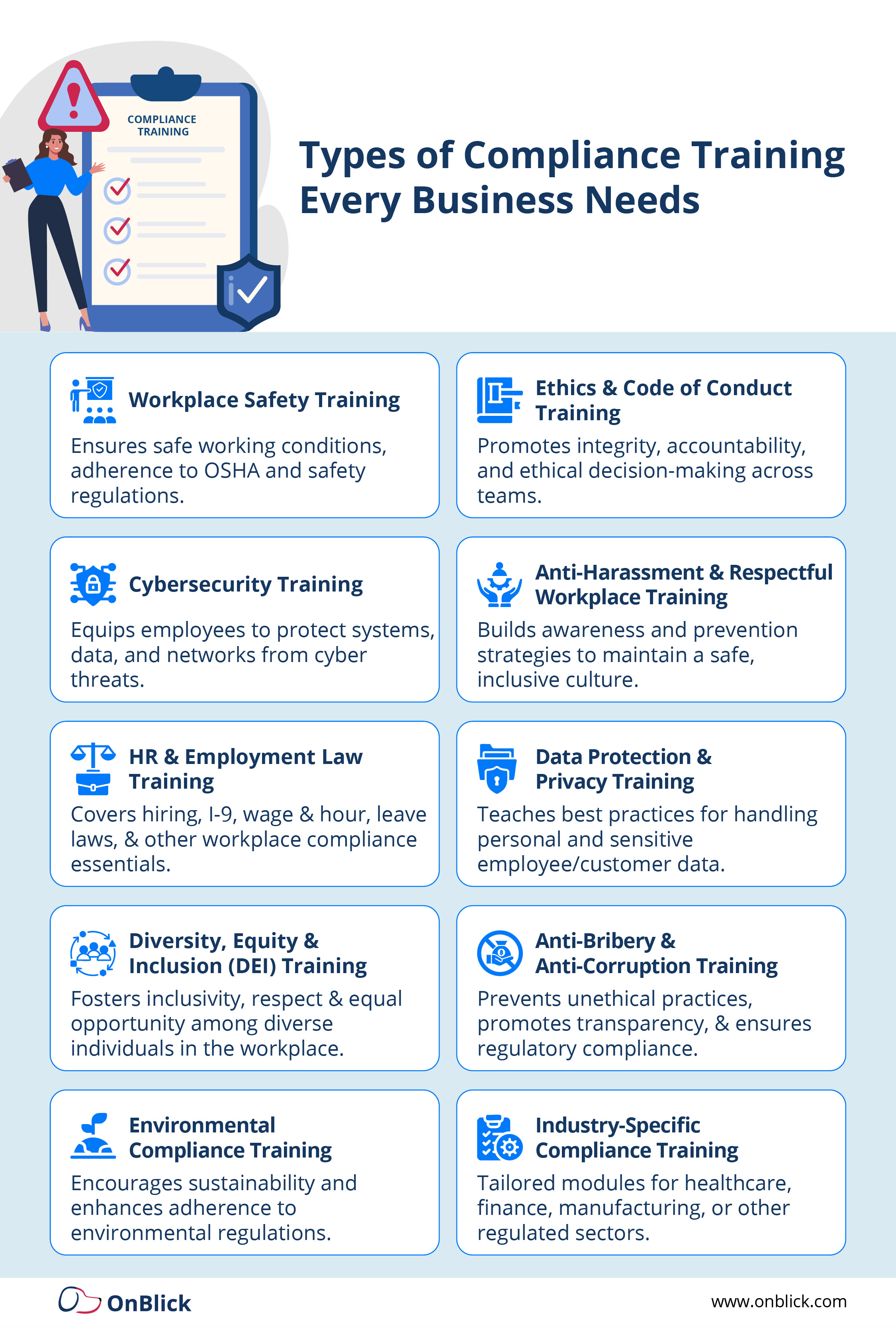 Effective compliance training should cover the basics: workplace safety, anti-harassment, data privacy, payroll accuracy, and employment documentation like Form I-9. These sessions can be delivered in short, digestible formats such as onboarding modules, quarterly refreshers, or even micro-learning videos.