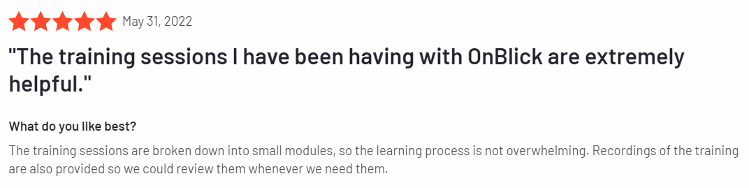 Here are a few reviews about OnBlick on G2