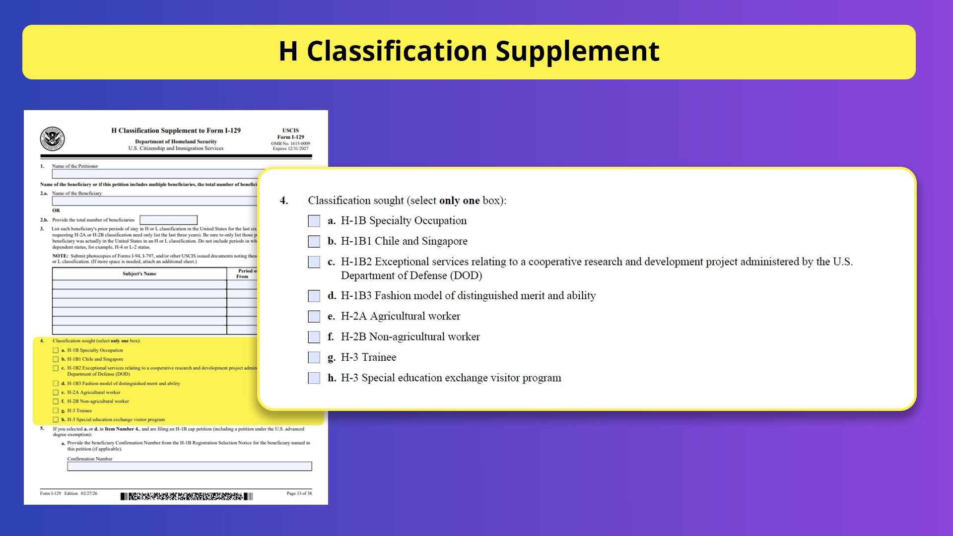 The H-1B supplement now captures more detailed inputs on education, experience, and role expectations. This enables a deeper review of whether the position meets specialty occupation criteria. Employers should ensure these details are clearly documented and supported across all related filings.